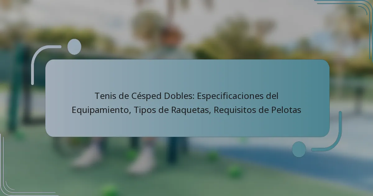Las especificaciones del equipo para el tenis de césped en dobles incluyen dimensiones específicas de la cancha, altura de la red y tipos de raquetas y pelotas recomendados. Comprender estos elementos es crucial para un rendimiento óptimo y la adherencia a las regulaciones competitivas.