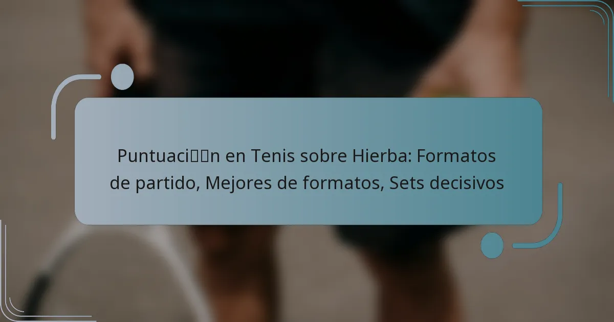 El tenis sobre hierba presenta varios formatos de partidos que impactan significativamente el juego y las estrategias, categorizados principalmente por el número de jugadores y los sistemas de puntuación. Los formatos más comunes incluyen el mejor de tres sets y el mejor de cinco sets, que dictan cuántos sets debe ganar un jugador para asegurar la victoria. Además, los sets decisivos entran en juego cuando los jugadores están empatados, a menudo requiriendo un margen específico para determinar al ganador.