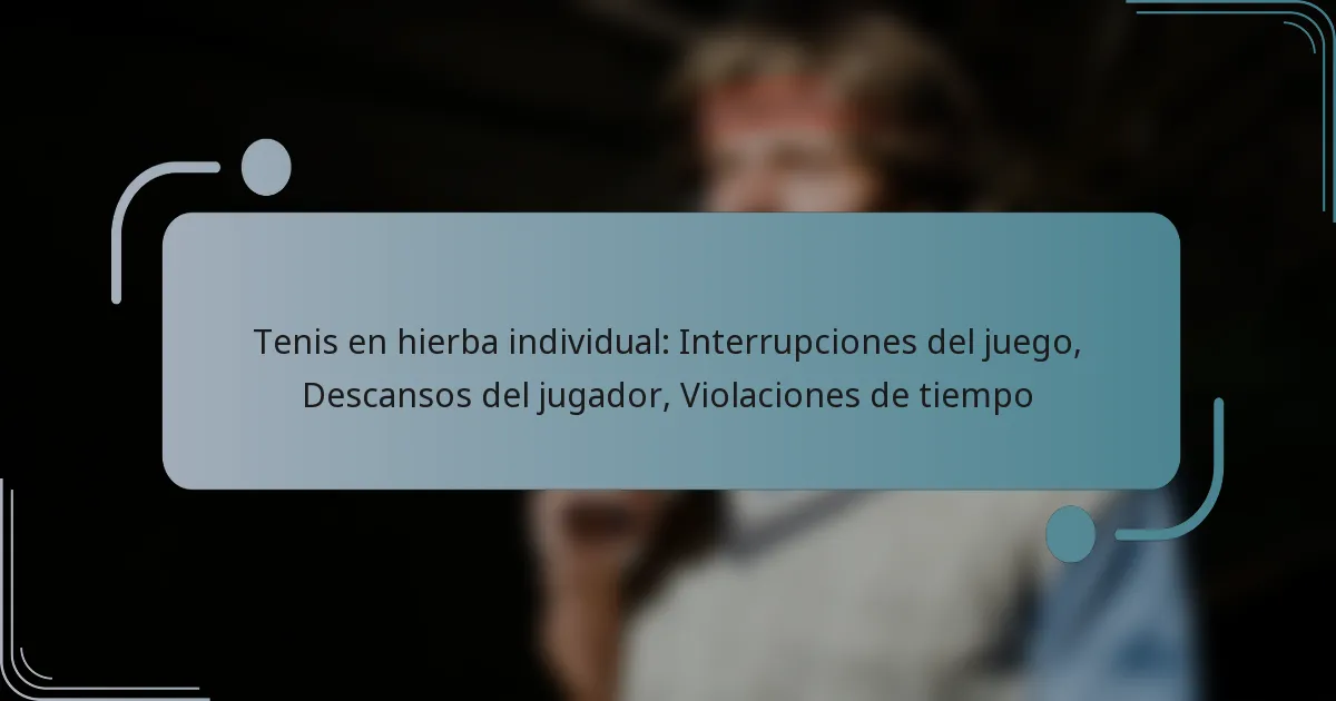En el tenis sobre hierba individual, las interrupciones del juego pueden impactar significativamente el ritmo del partido, derivadas de pausas de los jugadores, cambios climáticos o factores externos. Las pausas de los jugadores están reguladas para asegurar que no interrumpan el flujo del juego, mientras que las violaciones de tiempo ocurren cuando los jugadores superan el tiempo asignado entre puntos o juegos, lo que puede llevar a sanciones. Comprender estos elementos es crucial tanto para los jugadores como para los espectadores para apreciar la dinámica del juego.