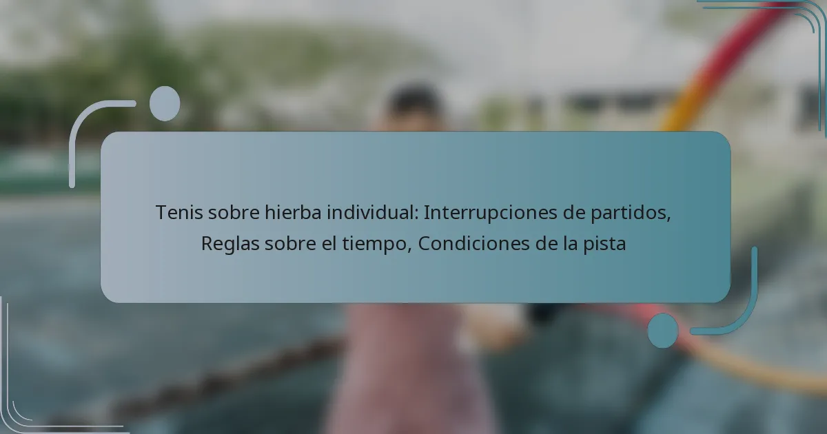 Los partidos individuales de tenis sobre hierba pueden ser interrumpidos por diversas razones, incluyendo condiciones climáticas adversas y lesiones de los jugadores. Comprender las reglas que rigen estas interrupciones es crucial tanto para los jugadores como para los espectadores, ya que determinan cómo y cuándo se puede reanudar el juego. Factores climáticos como la lluvia, el viento y las temperaturas extremas pueden afectar significativamente la programación de los partidos y el rendimiento de los jugadores, mientras que las condiciones de la cancha también juegan un papel vital en la influencia del juego y los resultados.